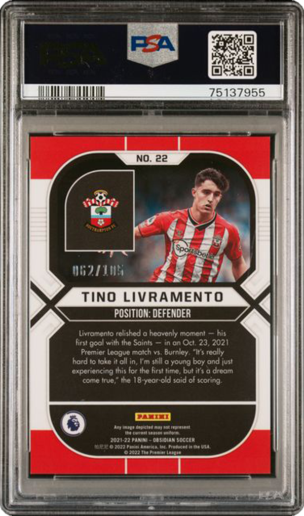 Tino Livramento – 2021/22 Panini Obsidian #22 – PSA 10 (Gem Mint)